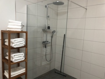 - Large walk-in rain shower 1,20 m x 1,20 m
